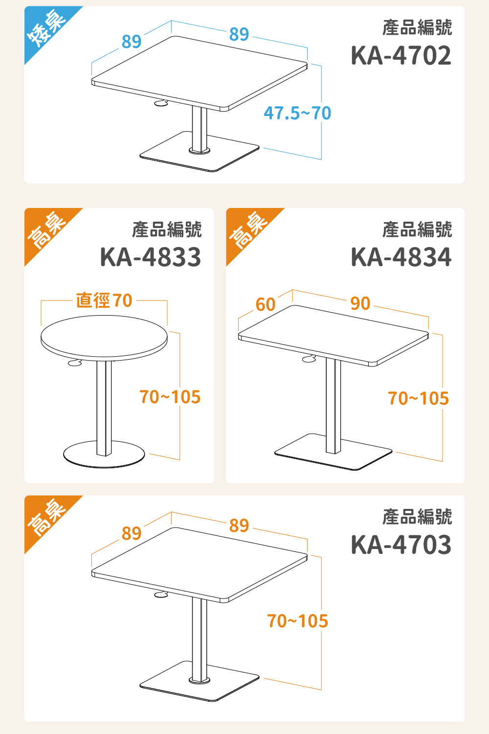 | 尺寸 | 寬 90 × 深 60 × 高 70–105 cm |