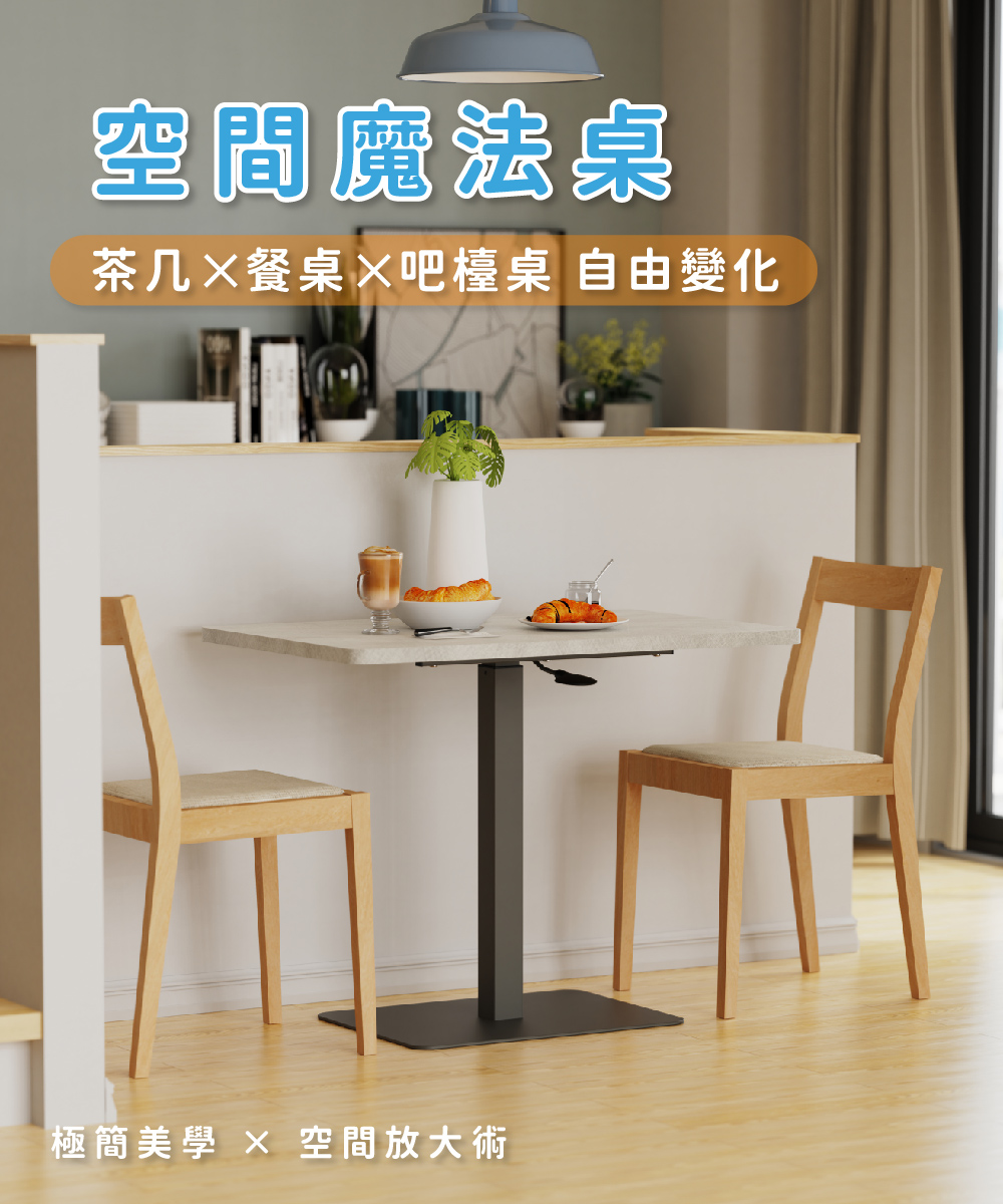 KA-4834【魔法桌】【高桌-方】氣壓升降餐桌 90 x 60 cm 兩色可選